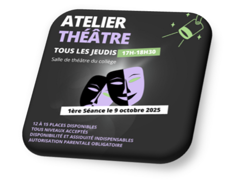 Cette année, les élèves du collège auront la chance de participer à un atelier théâtre d’improvisation, une pratique vivante et joyeuse où l’on invente des scènes sur le vif, à partir de simples consignes ou situations.